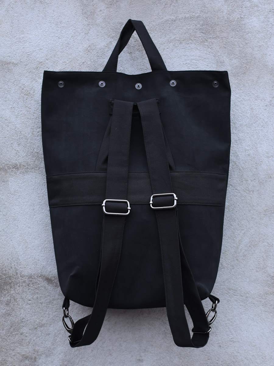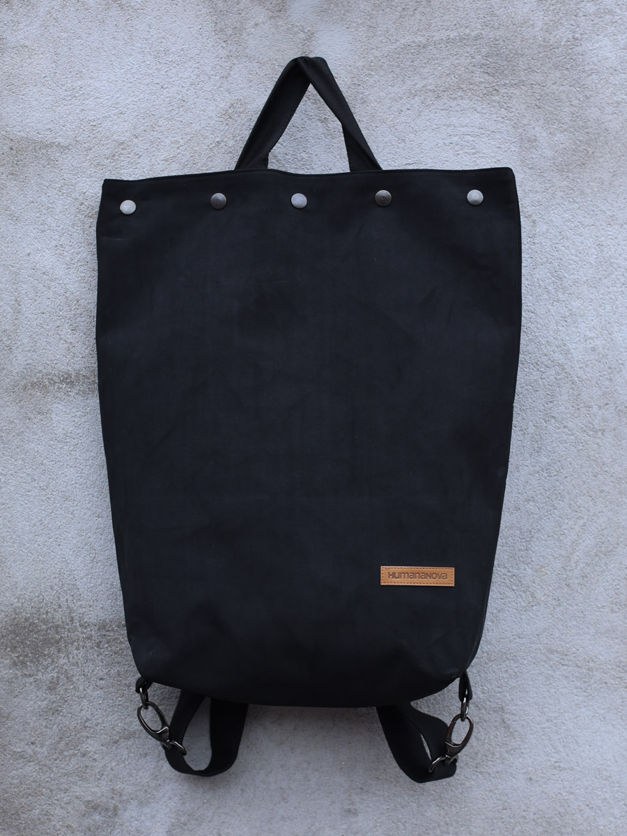 Bike ruksak izrađen je od eko kože i traka od trapera ili kepera (ovisno o dostupnim materijalima). Sastoji se od podesivih ručaka za nošenje koje se pomoću metalnih kopči pretvaraju u vezice pomoću kojih je ruksak moguće zavezati na volan bicikla.