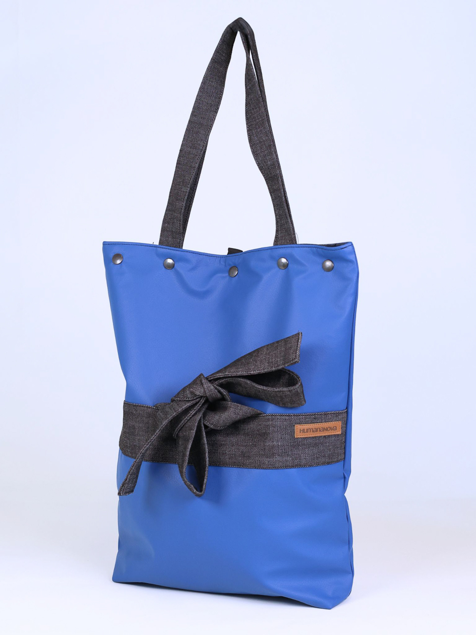 Bike torba izrađena je od eko kože i kombinacije ostalih materijala. Sastoji se od ručaka za nošenje u jednoj ruci te od vezica pomoću kojih je torbu moguće zavezati na volan bicikla.