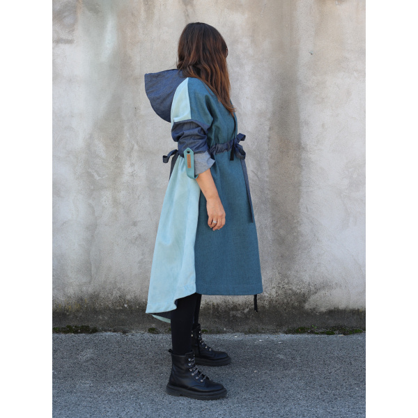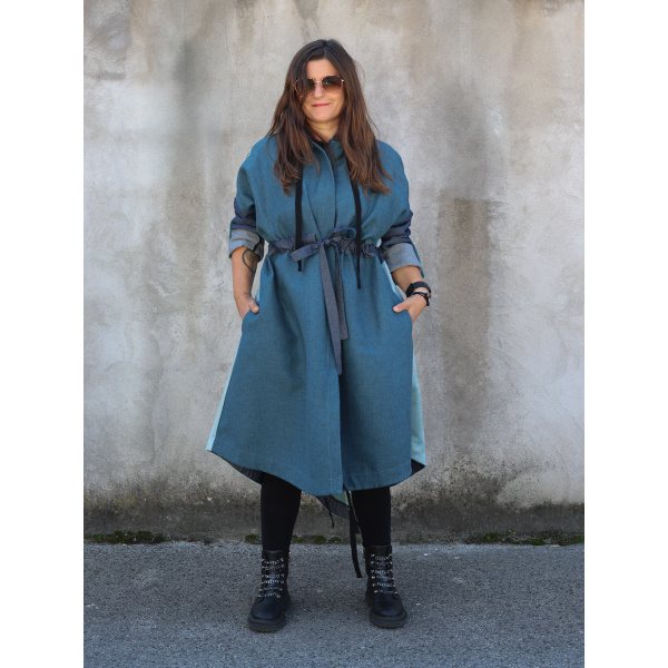 Dolazi u dvije veličine, s krojem koji se lako prilagođava različitim oblicima tijela. Parka ima zatvarač i vezice za podešavanje u struku, a pomoću trakica s prednje i stražnje strane moguće je oblikovati nabor prema želji. Funkcionalna, udobna i održiva – idealna za sve koji žele nositi odgovornu modu s karakterom.