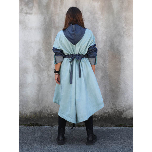 Parka je izrađena je od kombinacije prenamijenjenih materijala i ostataka iz procesa krojenja, što svaku čini unikatnom.