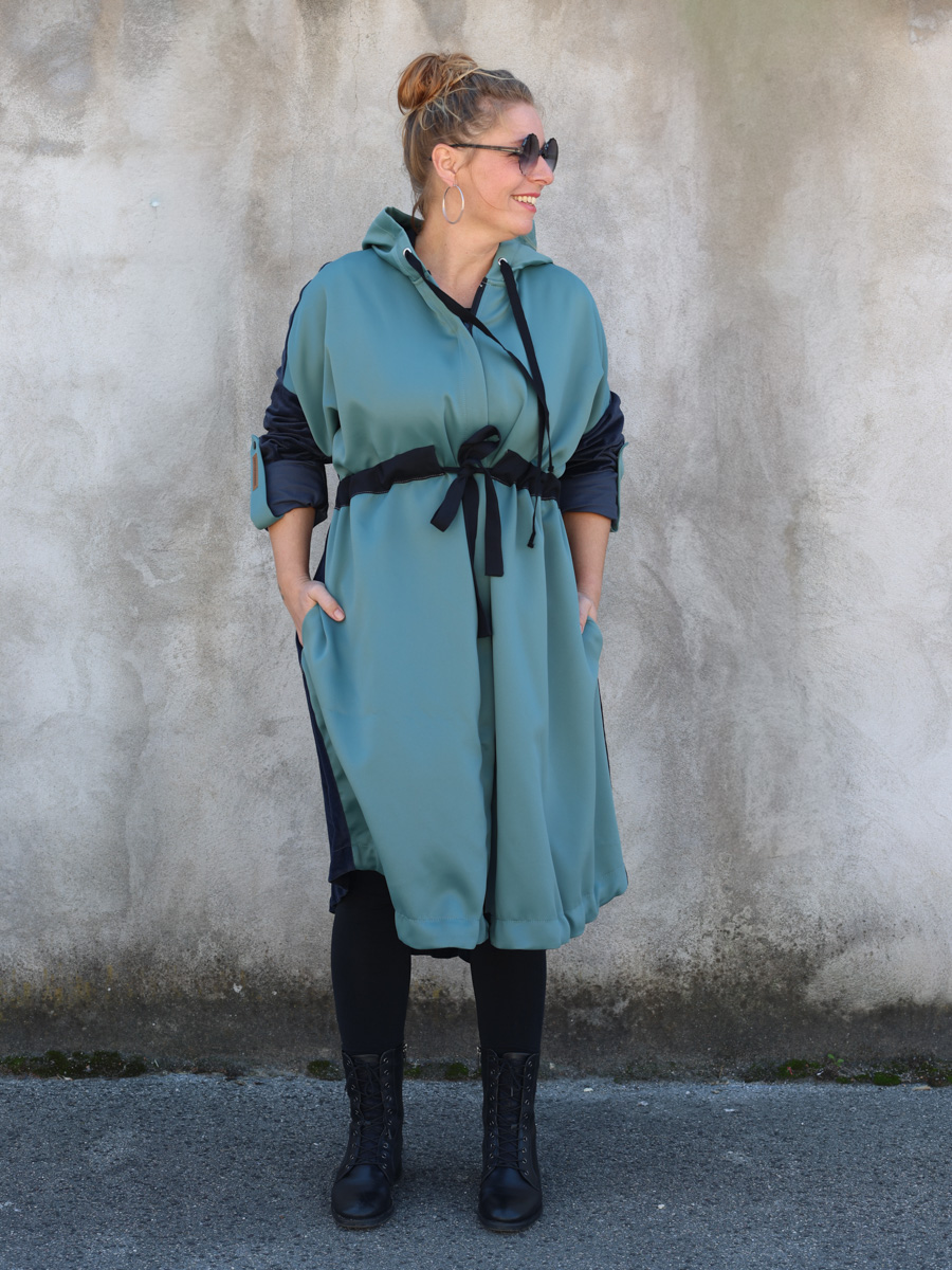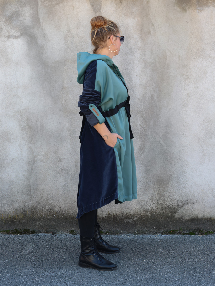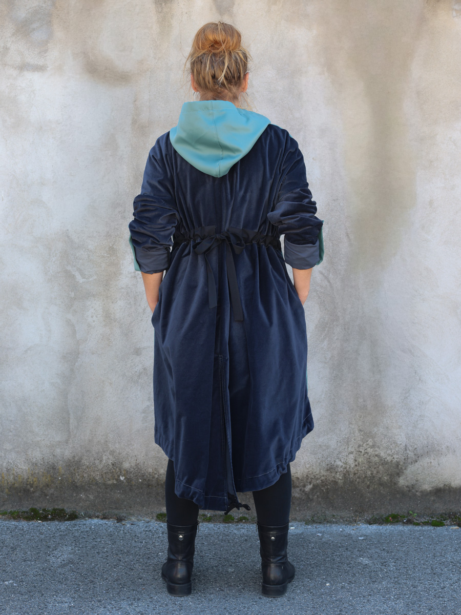 Dolazi u dvije veličine, s krojem koji se lako prilagođava različitim oblicima tijela. Parka ima zatvarač i vezice za podešavanje u struku, a pomoću trakica s prednje i stražnje strane moguće je oblikovati nabor prema želji. Funkcionalna, udobna i održiva – idealna za sve koji žele nositi odgovornu modu s karakterom.
