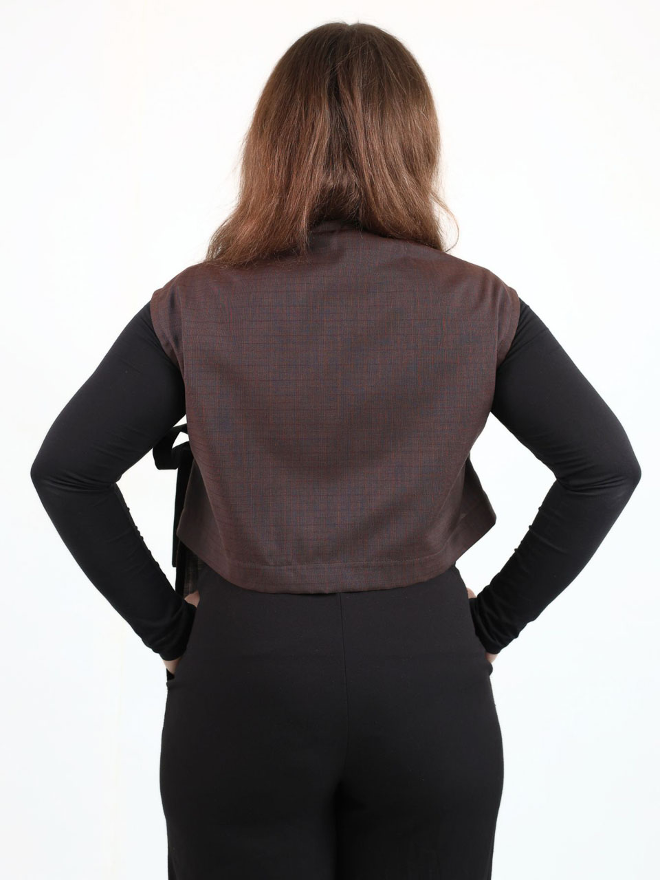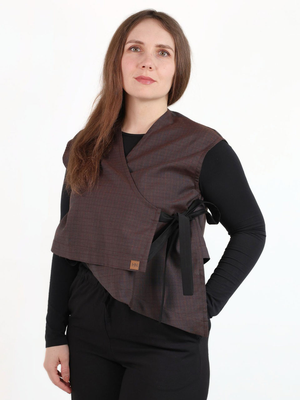 Ovaj zero waste praktičan i stilski prsluk izrađen je od reslova iz proizvodnje i nosiv je na više načina. Veže se u struku, čime se lako prilagođava obliku tijela i outfitu. Nosite ga: preko košulje za poslovni izgled, uz kratku ili dugu majicu za ležernu varijantu ili samostalno ljeti – kao efektan top. Raspon veličina: S-L