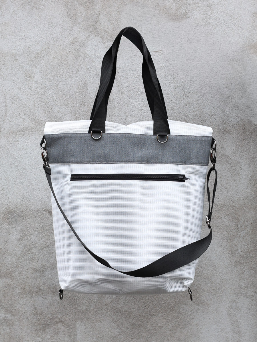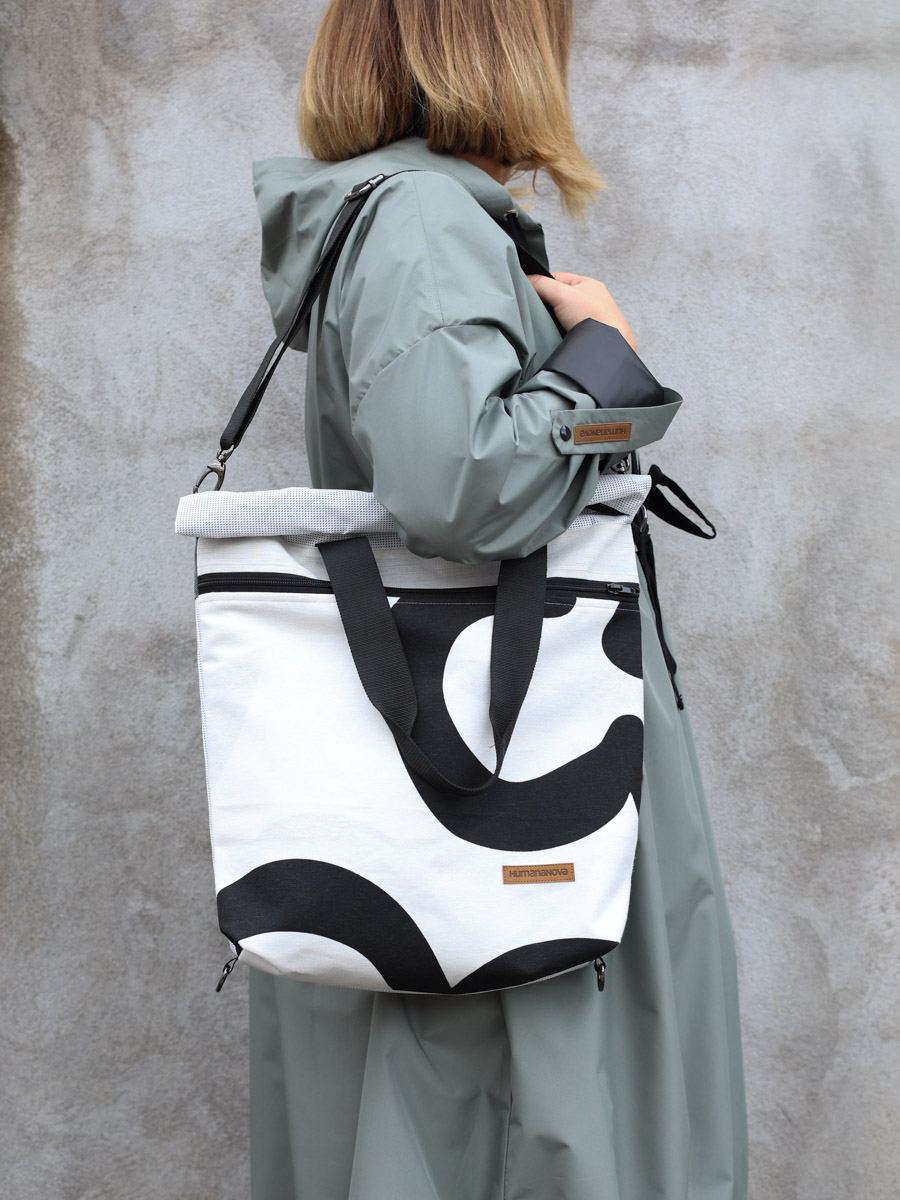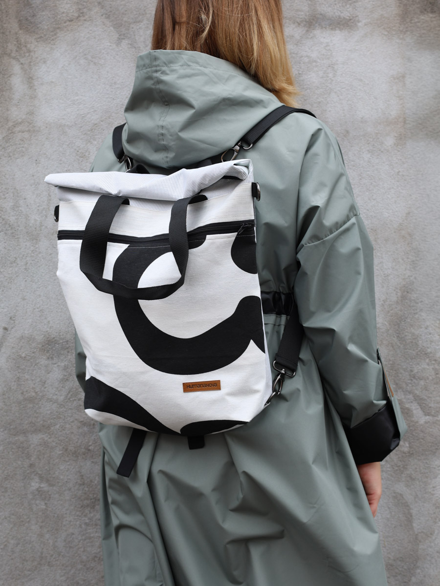 ECOVENTURE je višenamjenski ruksak izrađen u Humani Novoj od prenamijenjenih i čvrstih materijala. Zahvaljujući metalnim drukerima, gornji dio se može zarolati i zakopčati, mijenjajući oblik i volumen. Podesive naramenice, praktični džepovi (uključujući skriveni leđni i unutarnji džep s kopčom za ključeve) čine ga savršenim za organizaciju u pokretu. Kada se skinu naramenice, ECOVENTURE postaje torba – nosiva u ruci, na ramenu ili preko tijela. Svaki primjerak je jedinstven.